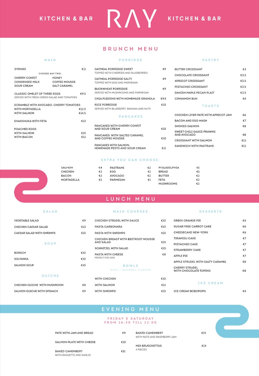 Welcome to RAY Kitchen & Bar, a hidden gem located in the scenic River-Plaza Complex of Limassol, Cyprus. This cozy and elegant café offers a delightful brunch menu crafted to elevate your mornings. From the rich and flavorful Shakshuka with feta (€13.00) to the perfectly poached eggs with salmon (€15.00), every dish is a testament to culinary care and precision.